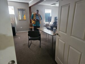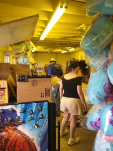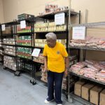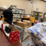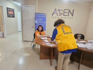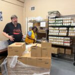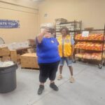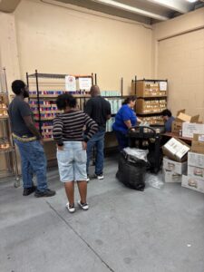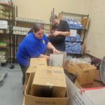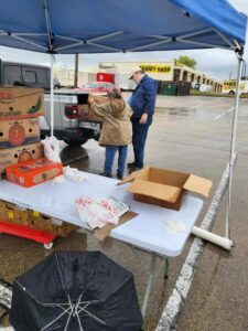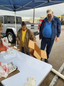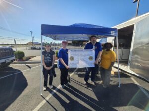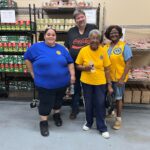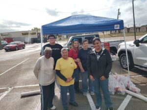 New Lion Kirsten Ellerbrock and her partner William Karlson (left & center) delivered the items collected by KELC to Audie Murphy Middle School for their pantry